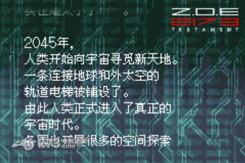 本作是Konami开发的知名星际策略类游戏 《Z.O.E》系列登陆的gba平台的新作,《Z.O.E星域毁灭者 2173》的题材以外星场景,玩家仍然操作各类机体在星际中进行战斗。本作的战斗还加入了技能瞄准系统,准确度会影响到技能的伤害值,同时也增加了战斗时 的临场感,非常不错。另外,系列帅气的机体也是本作的一大亮点。