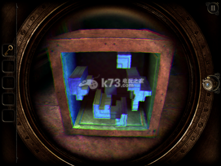 退回房间,回到机关盒处,点击透视镜会看到一组分散的积木,将其拼好。