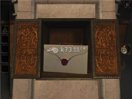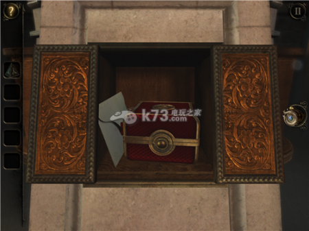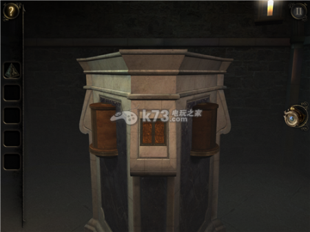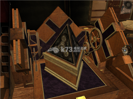 机关盒上出现了钥匙孔,用刚才的钥匙将其打开。出现一个三角锥物体,收好。
