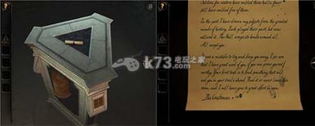 这间房里放了很多书和电闸,四处看看,桌子上有一封信,打开。