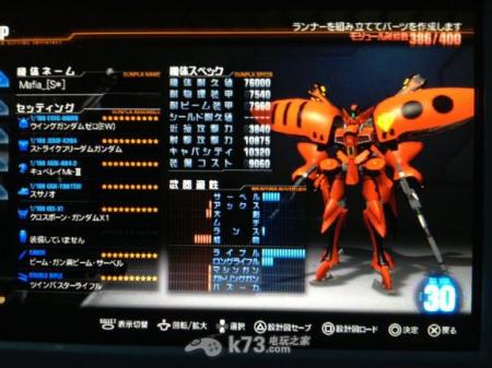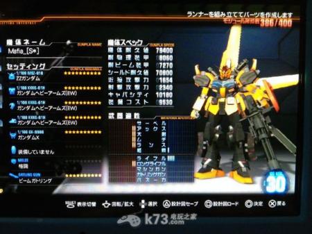 本人特别喜爱高达破坏者,目前玩了200多小时,所有好部件都是靠反复刷,SL大法和无意中得到,在这里与各位大神分享一下自己的机体。直接上图: