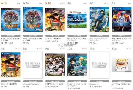 根据日本最大的实体租赁商Tsutaya官方公布的最新数据,上周日本地区迎来了大量新作的发售,最让人期待的莫过于ps3/psv新作《第三次超级机器人大战z天狱篇》和新3ds(new 3ds)独占新作《异度之刃3d》了,让我们来看看这些新作又有怎样的表现吧!