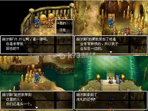 乘坐葫芦岛来到梦世界姆多城南方的群岛,这里会发现一个楼梯。穿过楼梯回到现实世界,往南走不远即可看到一所关卡。关卡此时已经可以通过了,穿过关卡继续前进不远即可到达赫尔斯托克城。与国王对话,国王委托主角带着王子去参加洗礼洞窟里的洗礼仪式。在城内打听情报,最后在木桶里终于找到了调皮的王子,带着王子会见国王之后即可出发。