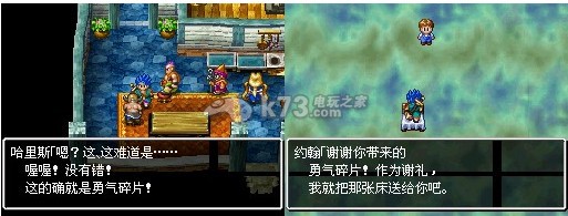 回镇子里和这对夫妇对话,把勇气碎片交给他们之后,夫妇二人为了表示感谢要让主角一行在家里留宿。此时会自动切换到梦之世界,夫妇二人的孩子表示感谢,把飞空床送给了主角。