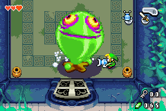 接下来就是游戏的第一个大BOSS战,是个气球一样的怪物,不过因为我们现在是缩小的状态,所以丫显得特别大,打法很简单,它跳起来的的时候别被他踩到了,用魔法壶吸它的脚(好吧,如果那个算脚的话)吸到最小的时候它会左摇右晃,等他倒下的时候梦看他的脑袋(倒下的时候别被砸到了)反复几次就能干掉它了