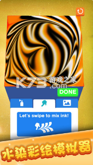 将染料滴在水面上,滑动屏幕以搅拌调制图案,最后为模型着色以完成您的杰作。