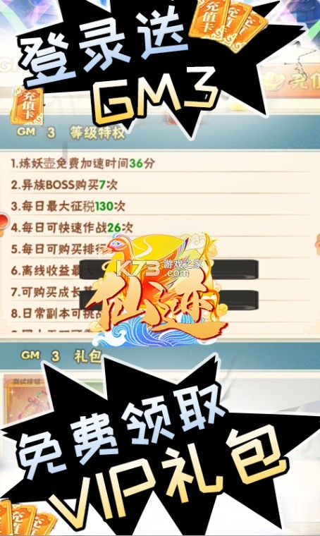 ★上线送满VIP和GM3!免费领取各种VIP礼包及福利!