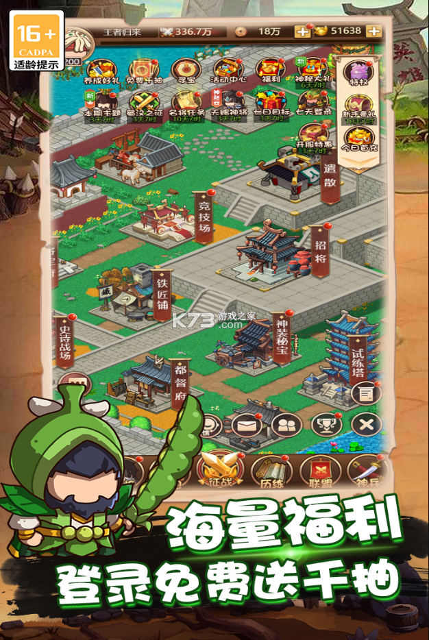 1、上线时会送出关羽和马超,这些强力武将可以帮助你轻松过关,并获得闯关奖励的赵云和绝世神兵