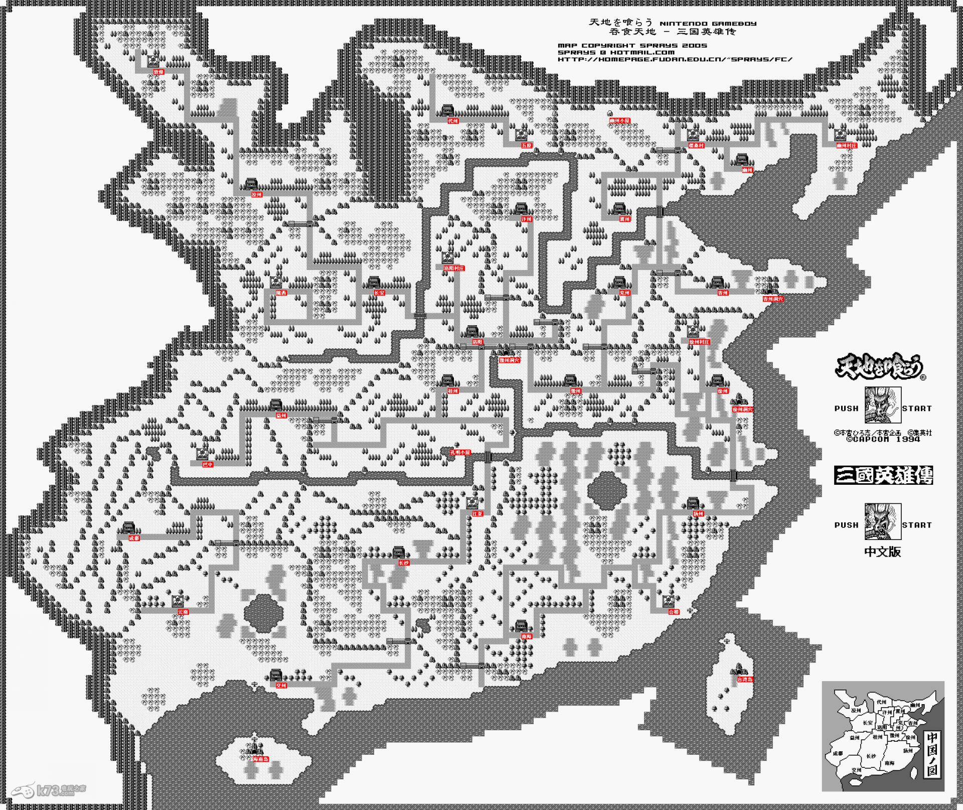 fc《吞食天地》又名《三国英雄传》,是小霸王时候最为经典的三国题材角色扮演游戏,游戏中玩家将扮演桃园三结义的刘备、关羽、张飞三人一起展开冒险,肩负恢复汉室江山的重任。不过当时由于机能的限制,游戏无法看到整个世界地图,下面就给大家gb版的游戏完整世界全地图。