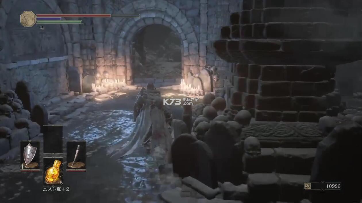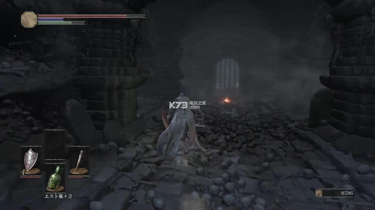 注意!上图是你已经穿过吊桥后的位置,这个地方可以砍断吊桥,然后将吊桥作为梯子,进入地下墓地的底层“熏之湖”,这里也是第二章攻略中所提到的“第三结局 火焰篡夺”的重要事件位置之一,