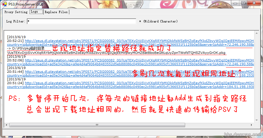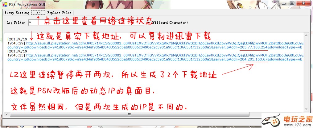 点击【继续】下载,这事观察ProxyServer的Logs列表,可以找到下载文件地址: