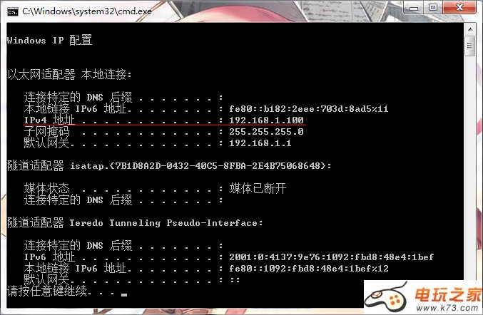PS:下载上面这个附件,解压并双击就能查看本机的网络连接状态,找到其中的【IPv4地址】,如下图:
