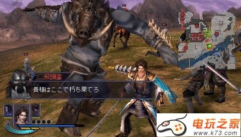 本作的画面基本和356sp一致,可谓不过不失。个人感觉在一些细节上还要比356sp好一点。人物脸部也表现的比较清楚,棱角很协调。这对于psp的机能来说已经是相当不错的了!一些锯齿大家就请无视他吧!毕竟无双不是靠画面来作为卖点的啊~大家就不要拿他和家用机比了,本来就不能这么比。我们发现,本作的开场加入了全战场的俯瞰大观,让我们来大致熟悉一下战场结构。本作的地图背景依然是贴图,远处被黑雾笼罩。可视范围并不怎么大,常常是走着走着冒出几个杂兵来。本作相比之前的蛇魔再临来说画面还是进步了很多的!一些技能的特效刻画的还是不错的!下面上两张图,各位自己对比一下吧!