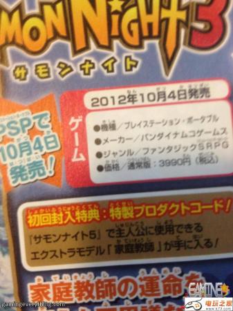 另外,Namco Bandai同样要将前两作也带到PSP上来,《召唤之夜3》于10月4日发售,而《召唤之夜4》于11月15日发售。
